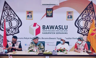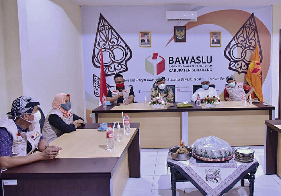 Ketua Bawaslu Abhan berharap Pengawas Tempat Pemilihan Suara (PTPS) bisa akses Formulir C7 Daftar Pemilih Tetap (DPT) Komisi Pemilihan Umum (KPU). Tujuannya untuk memastikan pemilih yang hadir dengan surat suara yang digunakan. saat kunjungi kantor Bawaslu Kabupaten Semarang, Jawa Tengah, Selasa malam, (8/12/2020). Photo: Humas Bawaslu Ri-Rama Agusta