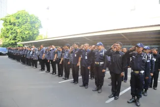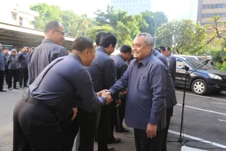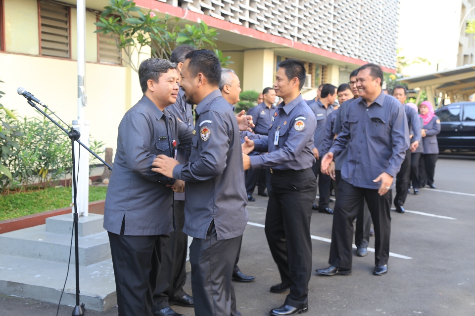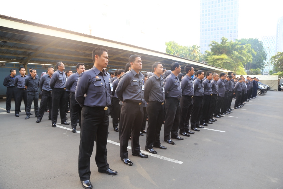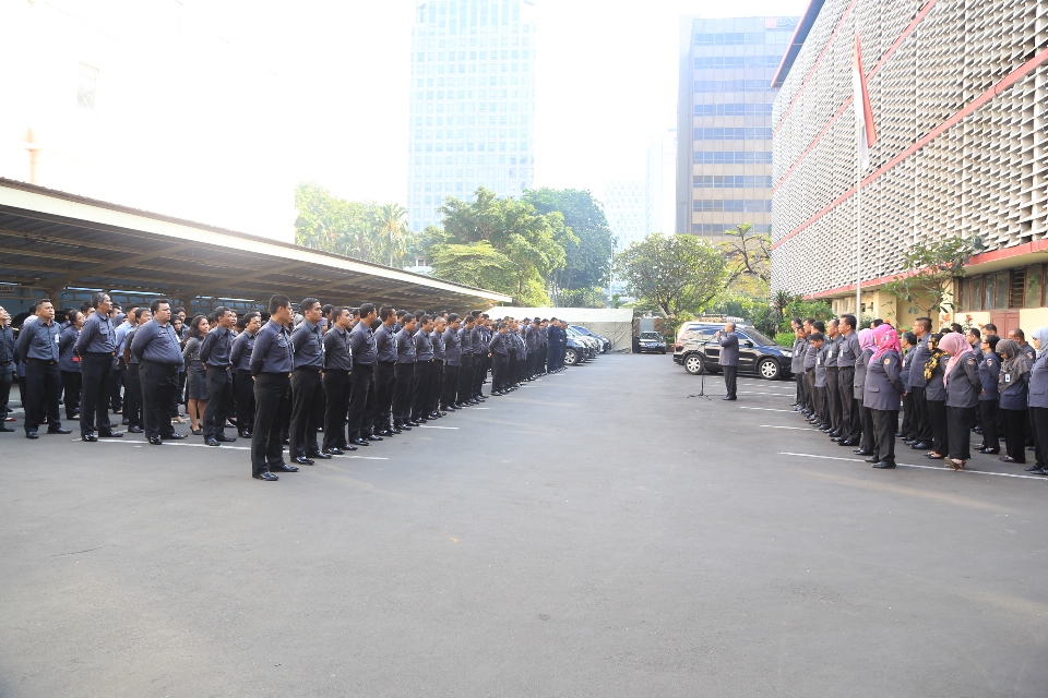 Jakarta, Bawaslu - Badan Pengawas Pemilu (Bawaslu) melaksanakan Apel Siaga Pasca Libur Lebaran, di Halaman Kantor Bawaslu, Jl. MH. Thamrin No 14 Jakarta, Senin (4/8). Dalam Apel yang dipimpin oleh Sekjen Bawaslu, Gunawan Suswantoro itu segenap jajaran Setjen Bawaslu diharapkan untuk menyiapkan diri dalam rangka menghadapi gugatan sengketa Pemilu di Mahkamah Konstitusi (MK) yang akan berlangsung pada 6 Agustus 2014. Acara ditutup dengan Halal Bi Halal antara Sekjen Bawaslu dengan segenap jajaran Setjen Bawaslu.