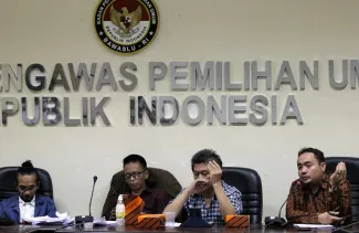 Bertempat di media center Bawaslu RI, Jumat (26/5) Anggota Bawaslu RI Mochammad Afiffudin dan Komite Independen Pemantau Pemilu (KIPP) Indonesia menggelar disksusi public yang membahas isu-isu krusial dalam RUU Pemilu yang sedang diupayakan untuk dirampungkan. Hadir dalam diskusi tersebut Kaka Sasmita Sekjen KIPP, Jojo Rohi Wasekjen KIPP serta moderator Girindra Sandino, Wasekjend KIPP. Photo: Humas-Nurisman