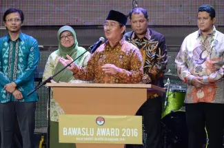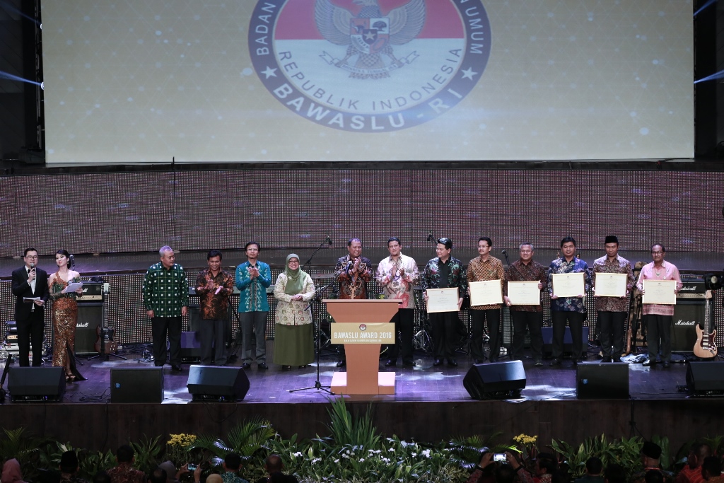 Jakarta, Badan Pegawas Pemilu - Badan Pengawas Pemilu (Bawaslu) Republik Indonesia memberikan apresiasi kepada jajaran pengawas pemilihan serta para Stakeholder pemilu terkait yang telah berkontribusi dalam Pemilihan Kepala Daerah (Pilkada) Tahun 2015. Apresiasi tersebut, Bawaslu kembali menggelar dengan adanya Anugrah Bawaslu Award 2016 tahun ini di Balai Sarbini Jakarta pada Senin (29/2).