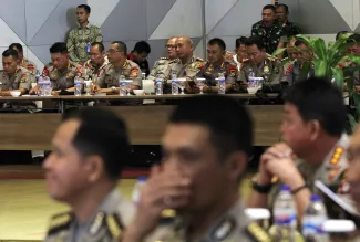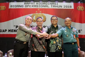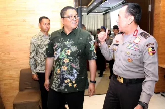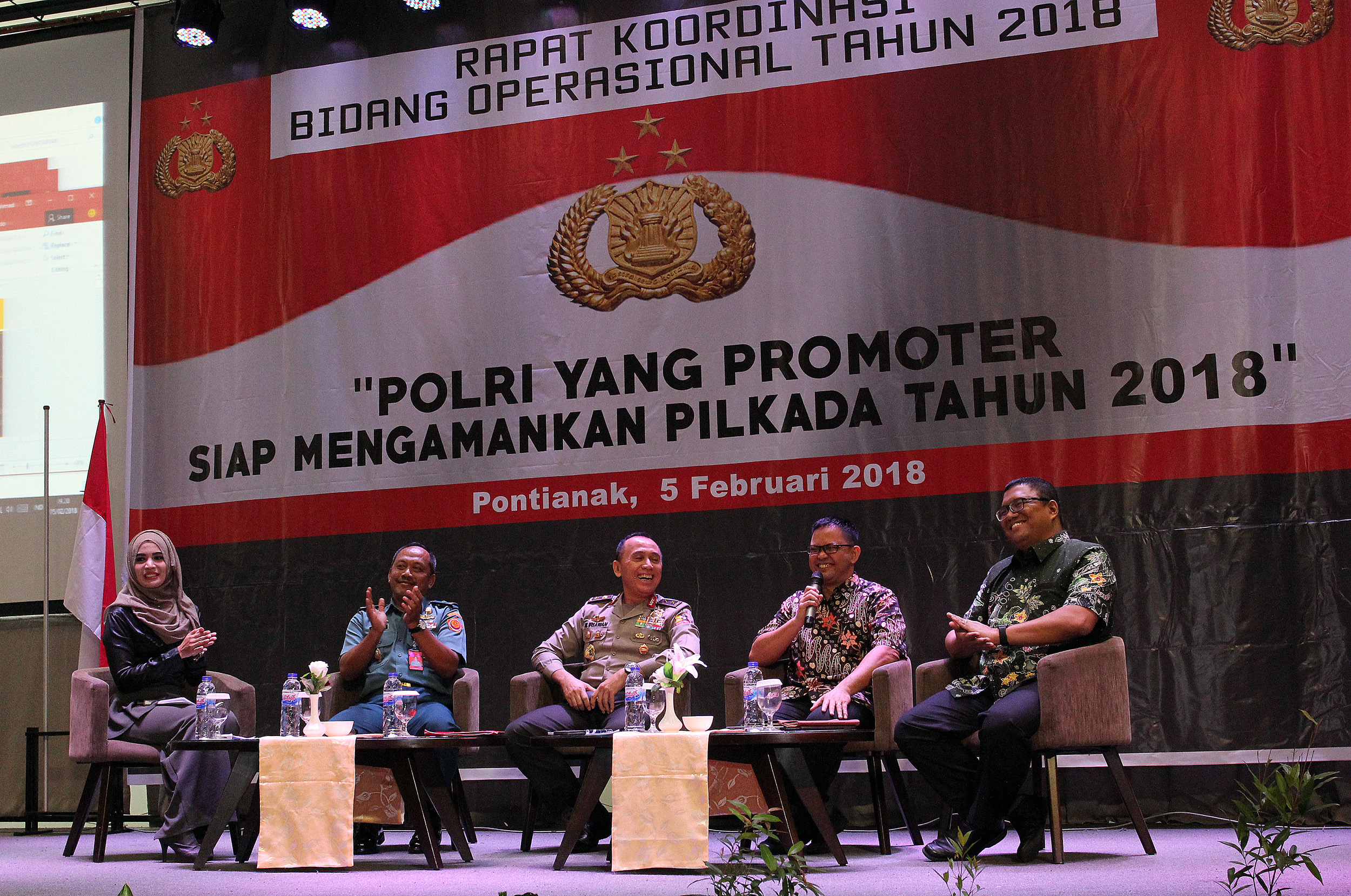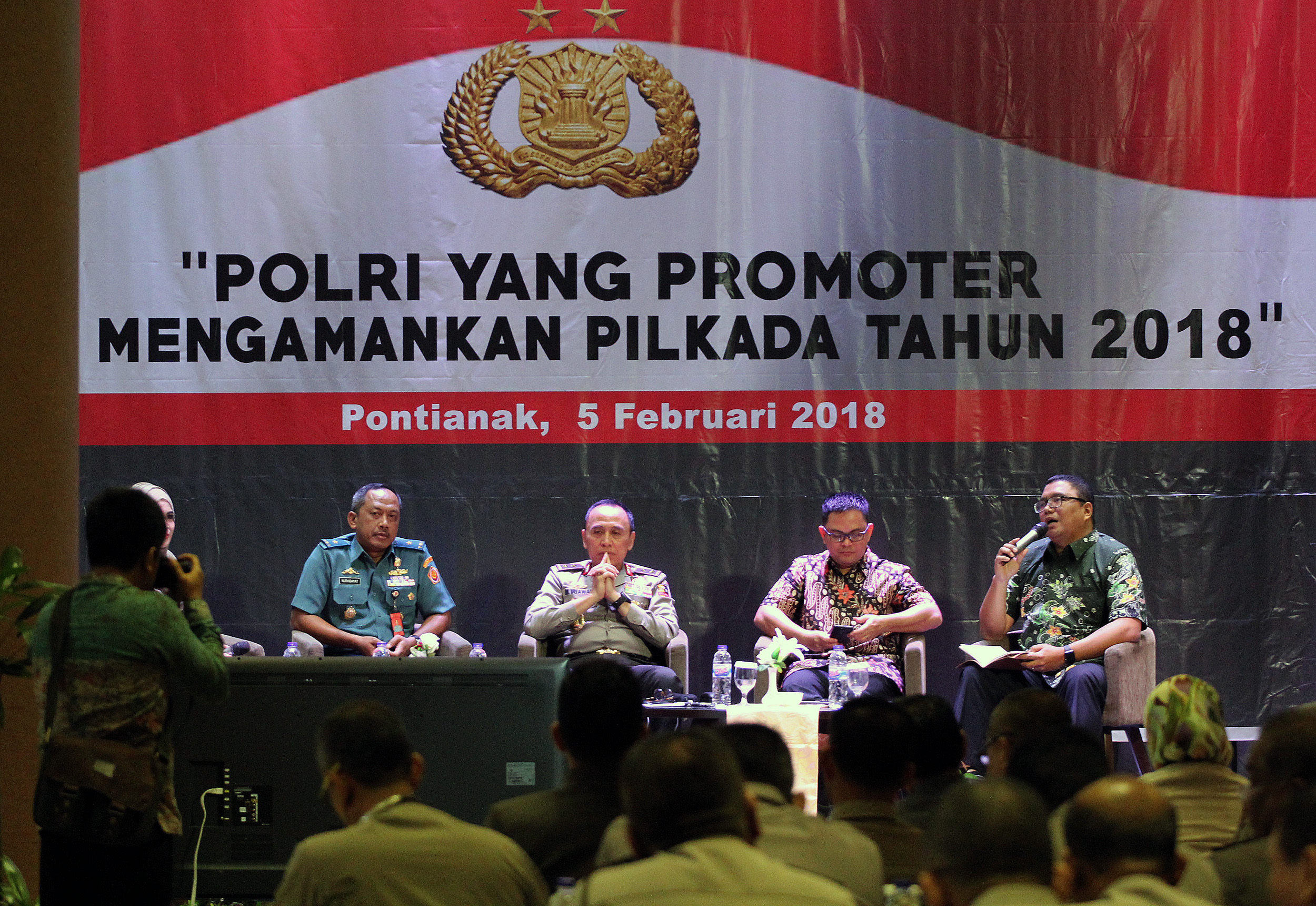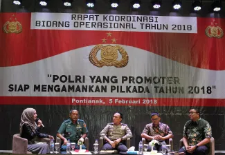 Anggota Bawaslu RI, Fritz Edward Siregar mengapresiasi Mabes Polri dalam kegiatan Rapat Koordinasi bidang operasional dalam rangka persiapan pengamanan Pemilihan Kepala Daerah (Pilkada) Tahun 2018, di Pontianak, Kalimantan Barat, Senin (05/02/2018) pagi. Photo : Humas-Nurisman