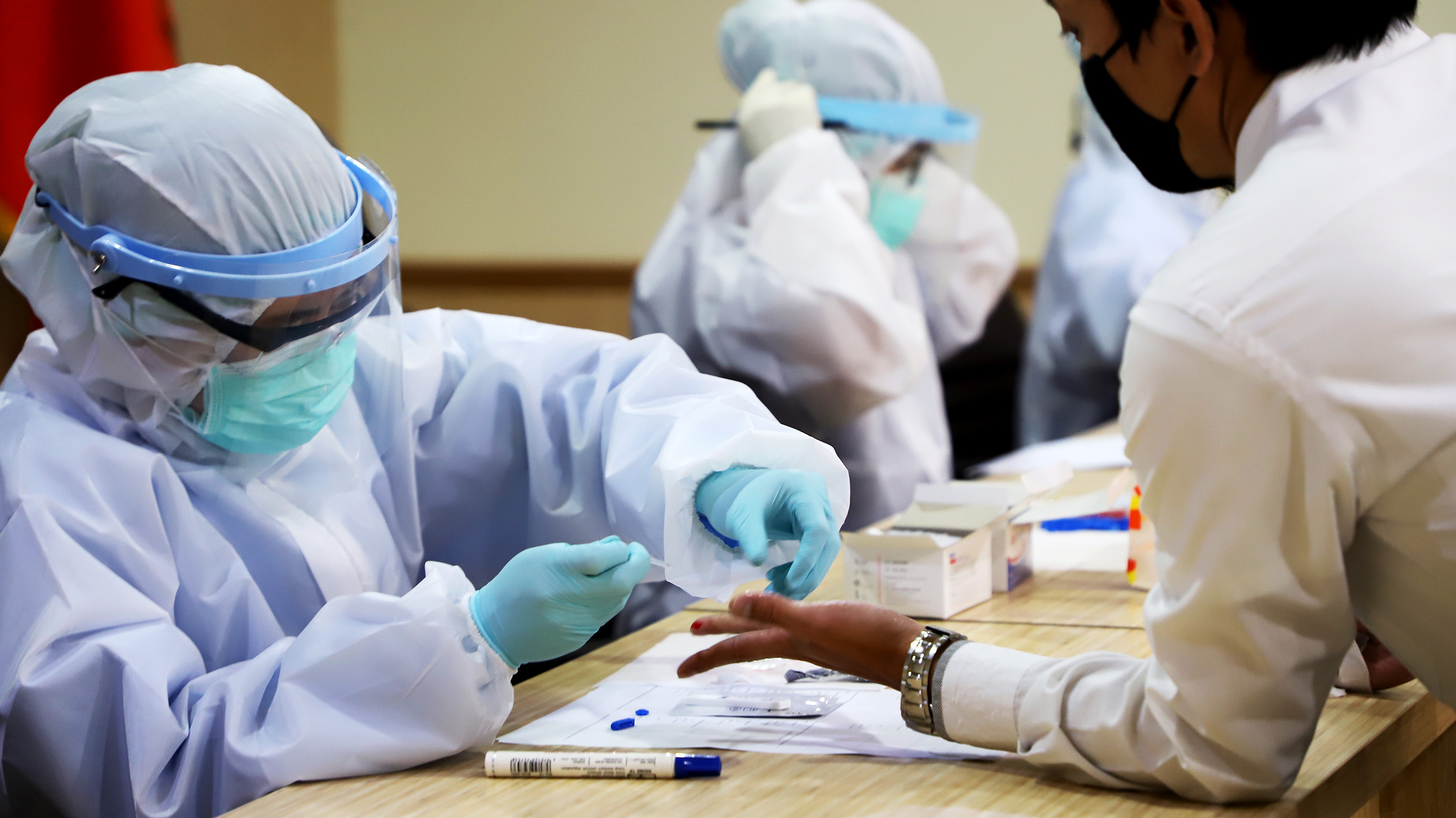 Bawaslu menggelar uji cepat (rapid test) Covid-19 sebagai bentuk antisipasi serta memutus rantai penyebaran corona. Uji cepat ini dilaksanakan di Kantor Bawaslu oleh tim Balai Kesehatan Masyarakat (Balkesmas) Pratama Bawaslu serta diikuti oleh Pimpinan, Pejabat struktural dan seluruh Staff dilingkungan kesekretariatan Bawaslu. Uji cepat (rapid test) ini dilakukan secara dua tahap dengan masa waktu 14 hari untuk rapid test pertama kemudian dilanjut dengan 14 hari untuk rapid test ke dua. Photo : HUMAS-Nurisman