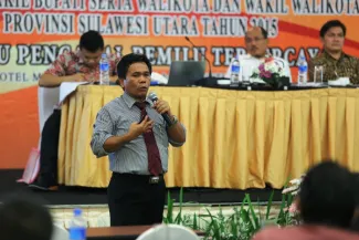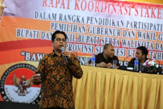 Manado, Badan Pengawas Pemilu - Badan Pengawas Pemilu Provinsi Sulawesi Utara menggelar Rapat Koordinasi Stakeholders Pengawasan Pemilihan Gubernur dan Wakil Gubernur, Bupati dan Wakil Bupati Serta Walikota dan Wakil Walikota Se-Provinsi Sulawesi Utara di Novotel Manado, Senin (12/10). Rakor tersebut digelar sebagai memberikan pemahaman, pengetahuan yang persepsi kepada stakeholder pemilihan akan pentingya pemilihan yang demokratis sesuai dengan asas pemilu serta mencegah pencegahan pelanggaran antara peserta pemilu yang berkompetisi mengikuti pilkada serentak di Provinsi Sulawesi Utara yang akan digelar pada tanggal 9 Desember 2015 nanti.