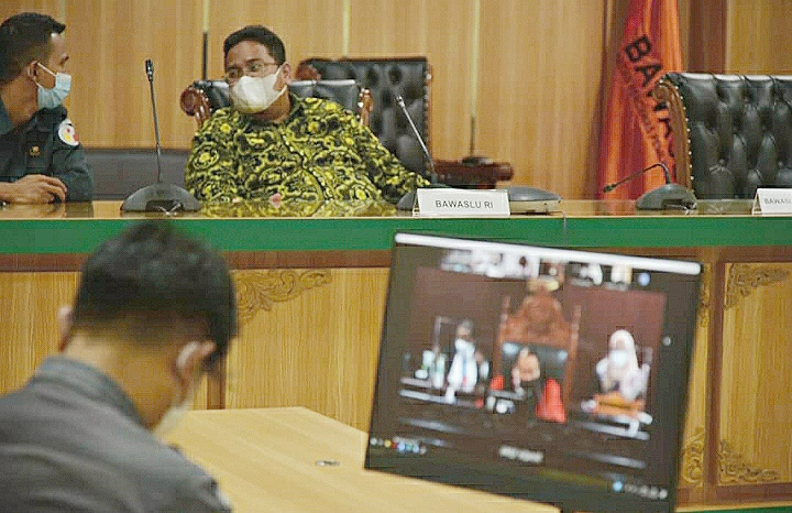 Jakarta, Badan Pengawas Pemilihan Umum-Anggota Bawaslu yang juga Koordinator Divisi Penyelesaian Sengketa Rahmat Bagja menghadiri sidang Perselisihan Hasil Pemilihan (PHP) Kepala Daerah Tahun 2020 melalui jaringan online, Senin, (29/3/2021) di Gedung Bawaslu Jln MH Thamrin 14, Jakarta Pusat. Sidang PHP Pilkada Tahun 2020 tersebut beragendakan mendengarkan permohonan pemohon dengan perkara nomor 136/PHP.BUP-XIX/2021 Bupati Pesisir Selatan perihal Perkara Perselisihan Hasil Pemilihan Gubernur, Bupati, dan Walikota Tahun 2020. Photo: HUMAS-Rama Agusta