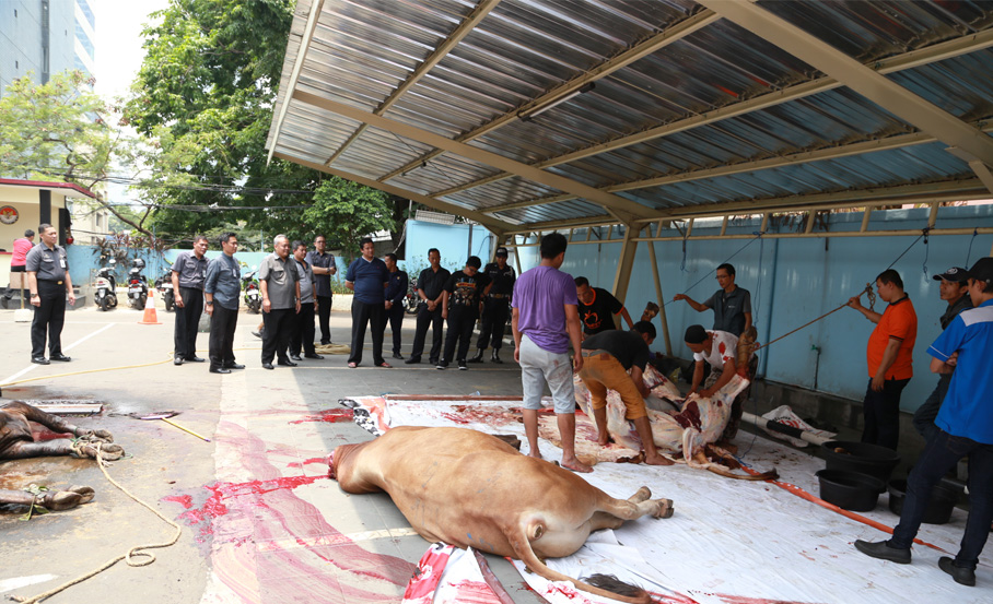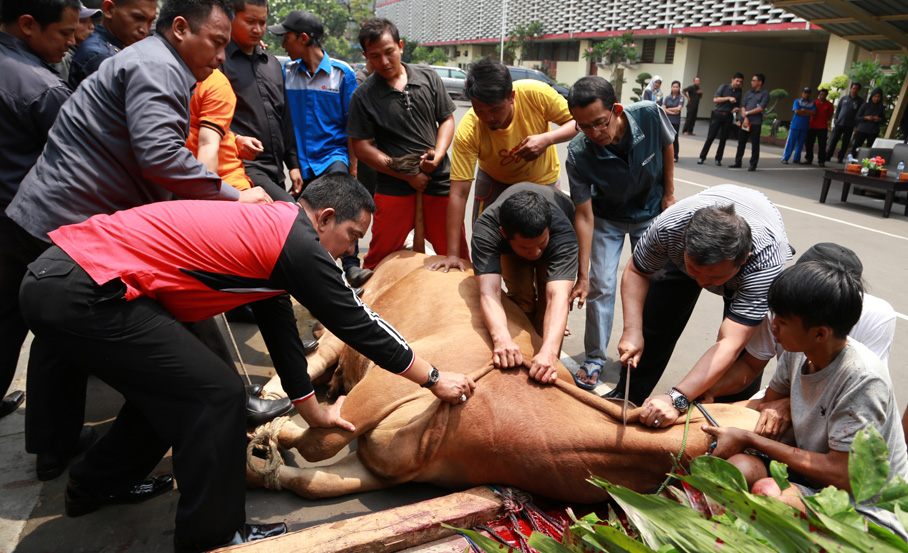 Jakarta, Badan pengawas Pemilu - pada tanggal 12 Dzulhijjah 1435 H atau lebih tepatnya 7 Oktober 2014 Bawaslu RI melaksanakan Penyembelihan Hewan Kurban tiga ekor Sapi dan satu ekor Kambing. Jumlah hewan kurban tahun ini sama seperti tahun lalu. Proses penyembelihan dilakukan di halaman Parkir gedung Bawaslu RI. Acara dibuka oleh Jajang Abdullah selaku ketua Panitia Kurban Bawaslu RI pada hari raya Idul Adha 1435 H.