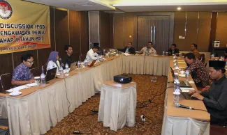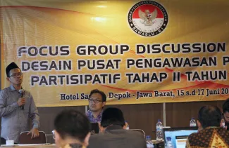 Kordinator Divisi Sosialisasi dan Pengawasan, Mochammad Afiffudin membuka Focus Group Discussion (FGD) mengenai Desain Pusat Pengawasan Pemilu Partisipatif Tahap II tahun 2017 di Hotel Santika, Depok, Kamis (15/6). Hadir dalam kegiatan tersebut anggota Bawaslu RI, Rahmat Bagja, Kepala Bagian Sosialisasi TP3 Dirja Abdulkadir, narasumber Wahidah Syuaib, Toto Sugiarto, Heroik, Eka Satia Laksmana serta Tim Asistensi dan staf bagian sosialisasi TP3 Bawaslu RI. Photo: Humas-Nurisman