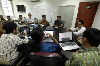Dalam rangka persiapan launching tampilan baru website Bawaslu, Badan Pengawas Pemilu (Bawaslu) menggelar diskusi meminta masukkan terkait data dan informasi, guna mendapatkan Website Bawaslu RI yang lebih Informatif, sederhana dan edukatif. Hadir dalam diskusi ini Kepala Bagian Humas dan Antar Lembaga Johnly Merentek, Kabag Teknis Pengawasan Pemilu Harimurti Wicaksono, Tenaga Ahli Bawaslu Masykuruddin Hafidz, para kasubbag dan staf di Sekretariat Jenderal Bawaslu. Photo: Humas-Nurisman
