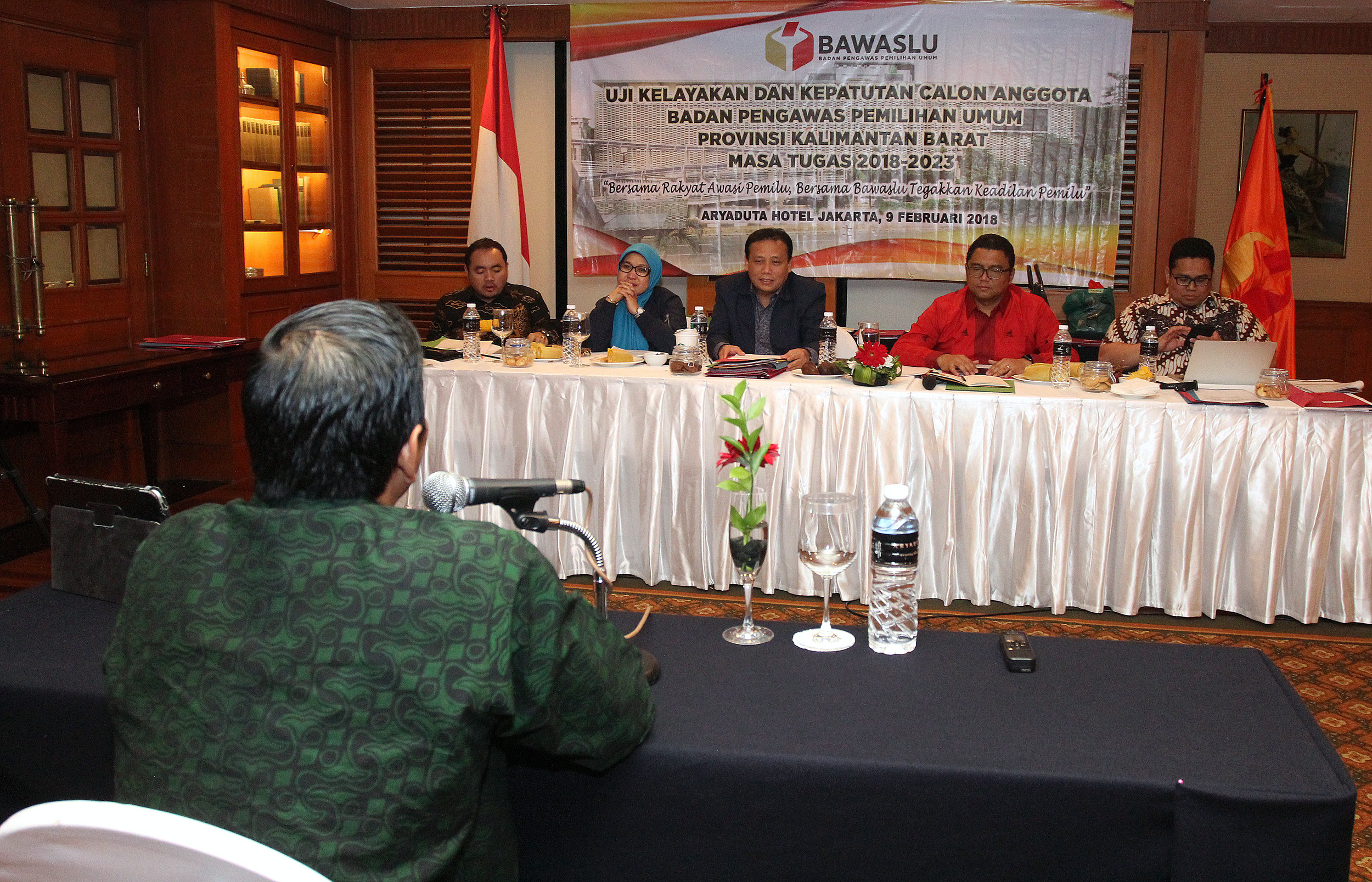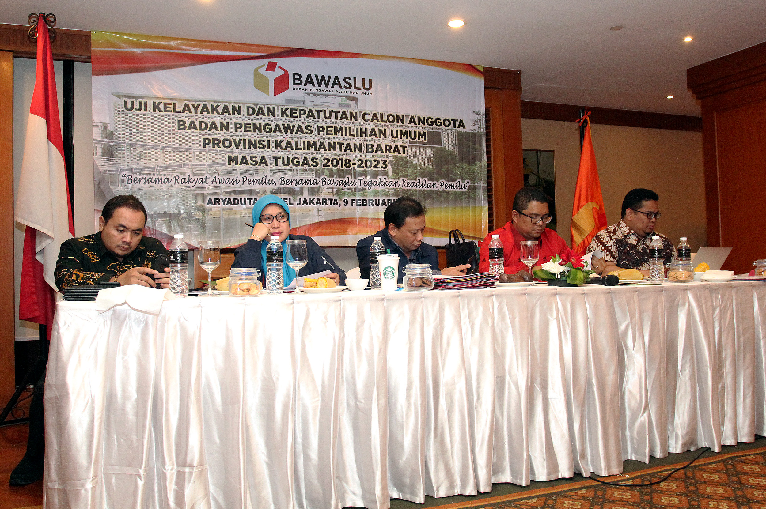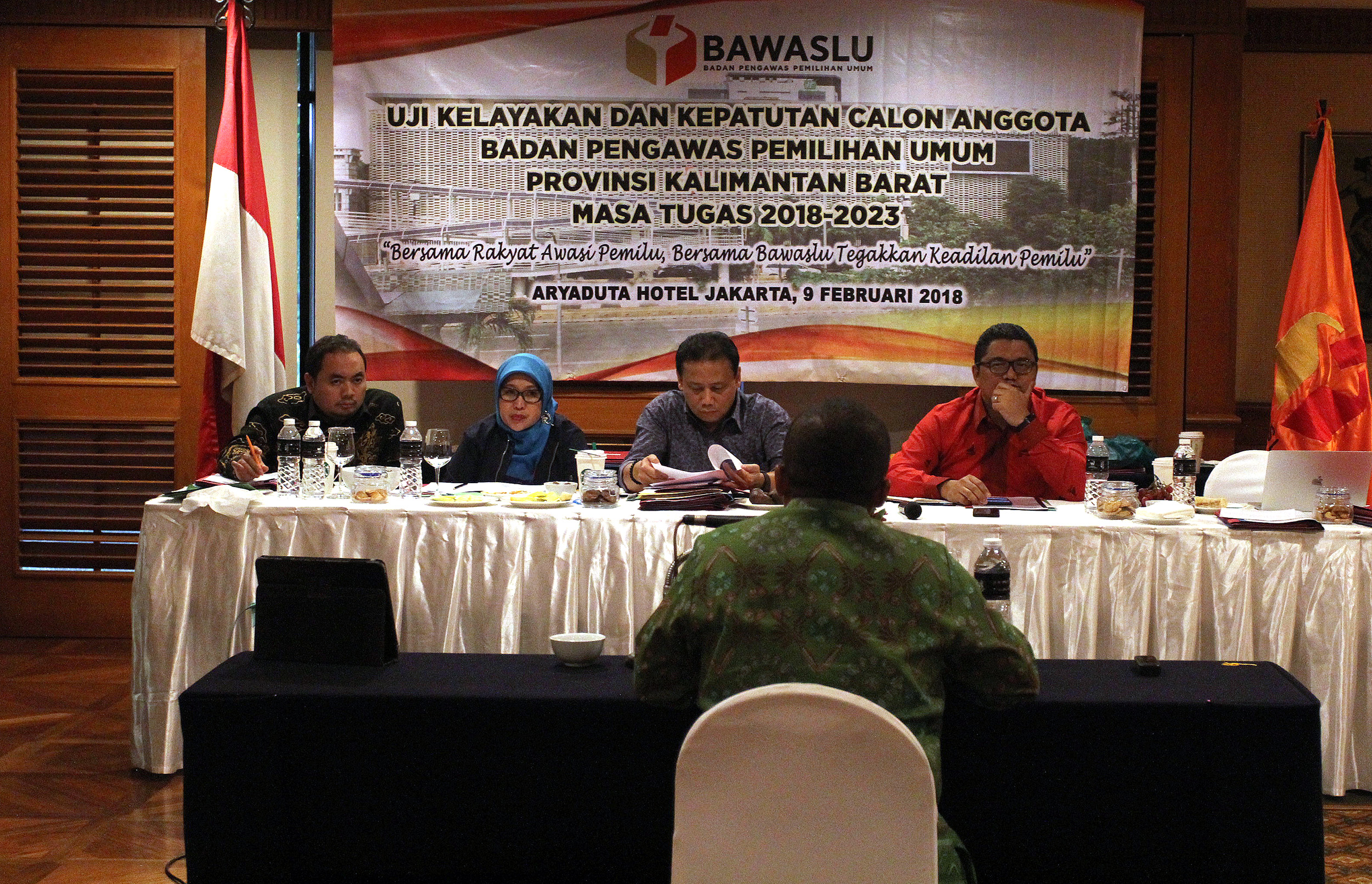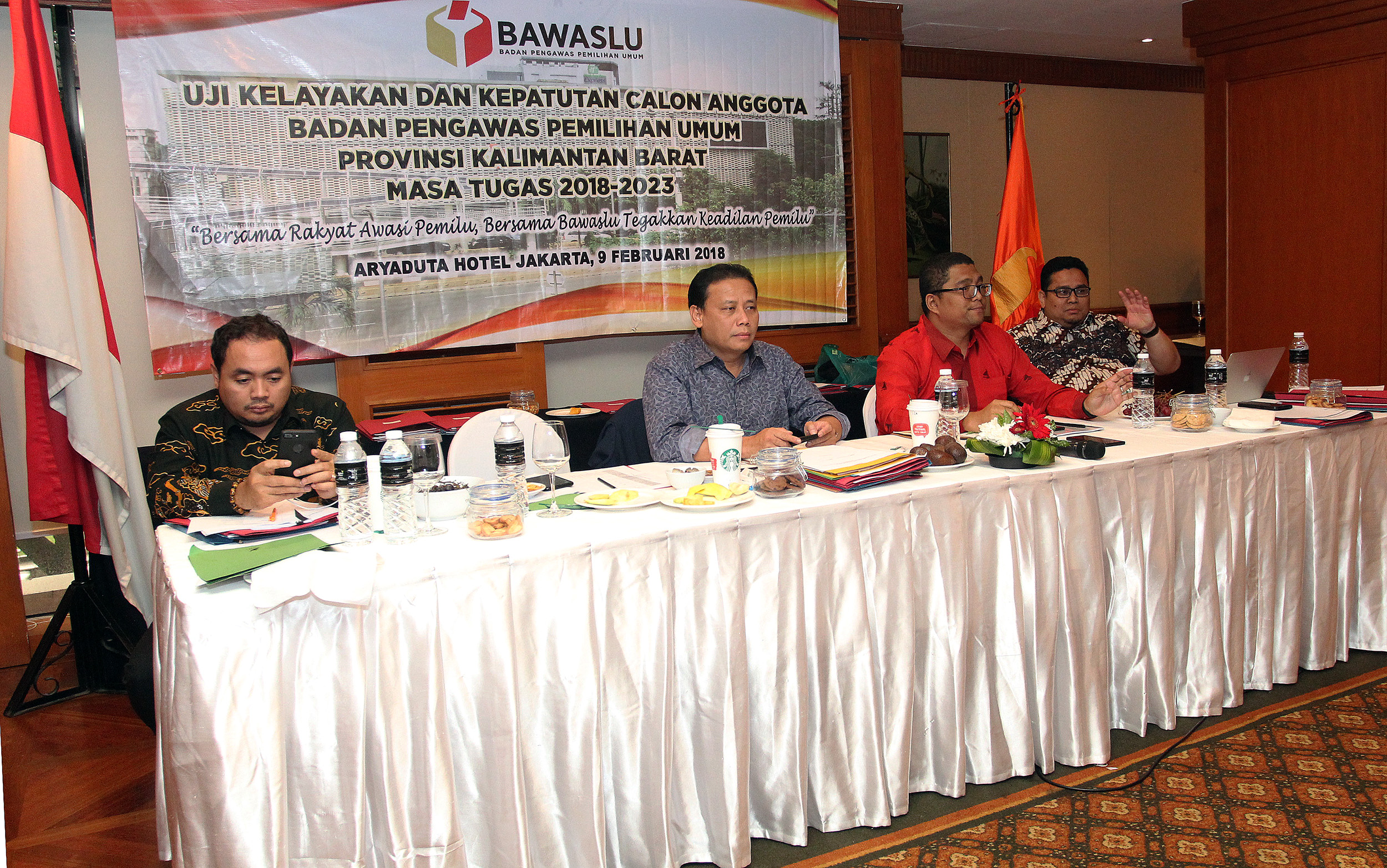 Ketua Bawaslu RI, Abhan bersama anggota Bawaslu Ri, Ratna Dewi Pettalolo, Fritz Edward Siregar, Mochammad Afiffudin serta Rahmad Bagja menggelar uji kepatutan dan kelayakan ( fit and proper test ) bagi anggota Bawaslu Provinsi Kalimantan Barat periode 2018-2023 di Hotel Aryadhuta, Jakarta, Rabu (14/2/2018). Apabila di UU 15 Tahun 2011 tentang Penyelenggara Pemilu Anggota Bawaslu Provinsi ditetapkan sebanyak tiga orang, maka melalui UU 7/2017 anggota Bawaslu Provinsi ditetapkan sebanyak lima atau tujuh orang, ini merupakan yang pertama kalinya dengan menggunakan dasar hukum Undang-Undang Nomor 7 Tahun 2017 tentang Pemilihan Umum. Photo: Humas-Nurisman