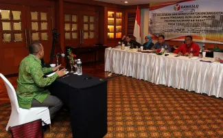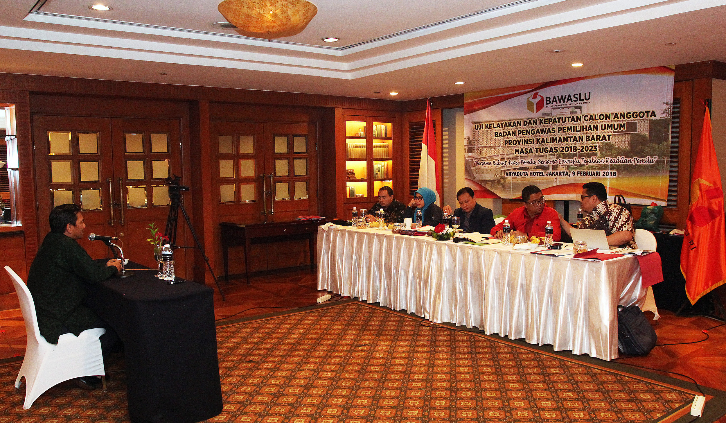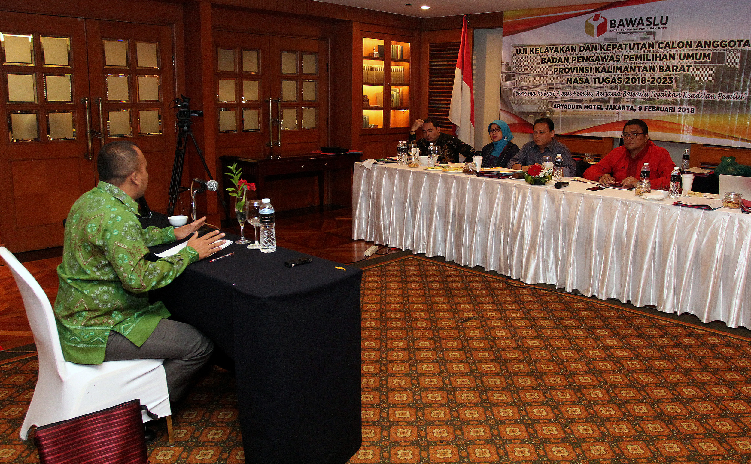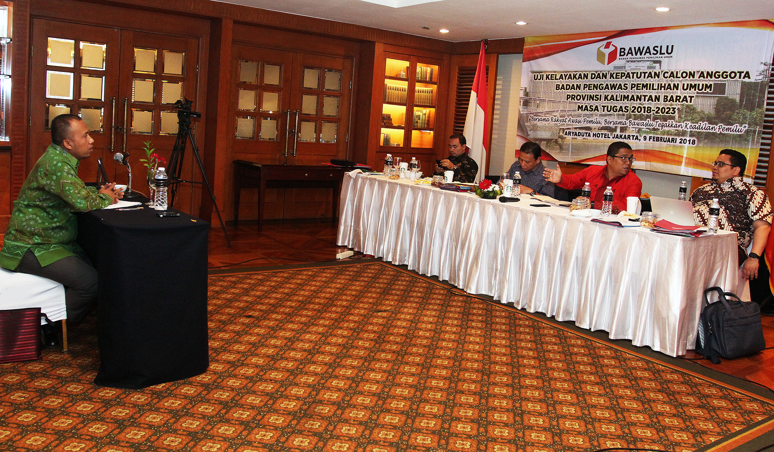 Ketua Bawaslu RI, Abhan bersama anggota Bawaslu Ri, Ratna Dewi Pettalolo, Fritz Edward Siregar, Mochammad Afiffudin serta Rahmad Bagja menggelar uji kepatutan dan kelayakan ( fit and proper test ) bagi anggota Bawaslu Provinsi Kalimantan Barat periode 2018-2023 di Hotel Aryadhuta, Jakarta, Rabu (14/2/2018). Apabila di UU 15 Tahun 2011 tentang Penyelenggara Pemilu Anggota Bawaslu Provinsi ditetapkan sebanyak tiga orang, maka melalui UU 7/2017 anggota Bawaslu Provinsi ditetapkan sebanyak lima atau tujuh orang, ini merupakan yang pertama kalinya dengan menggunakan dasar hukum Undang-Undang Nomor 7 Tahun 2017 tentang Pemilihan Umum. Photo: Humas-Nurisman
