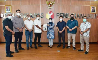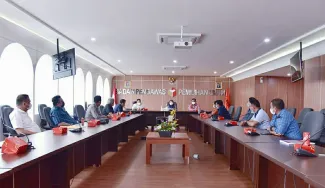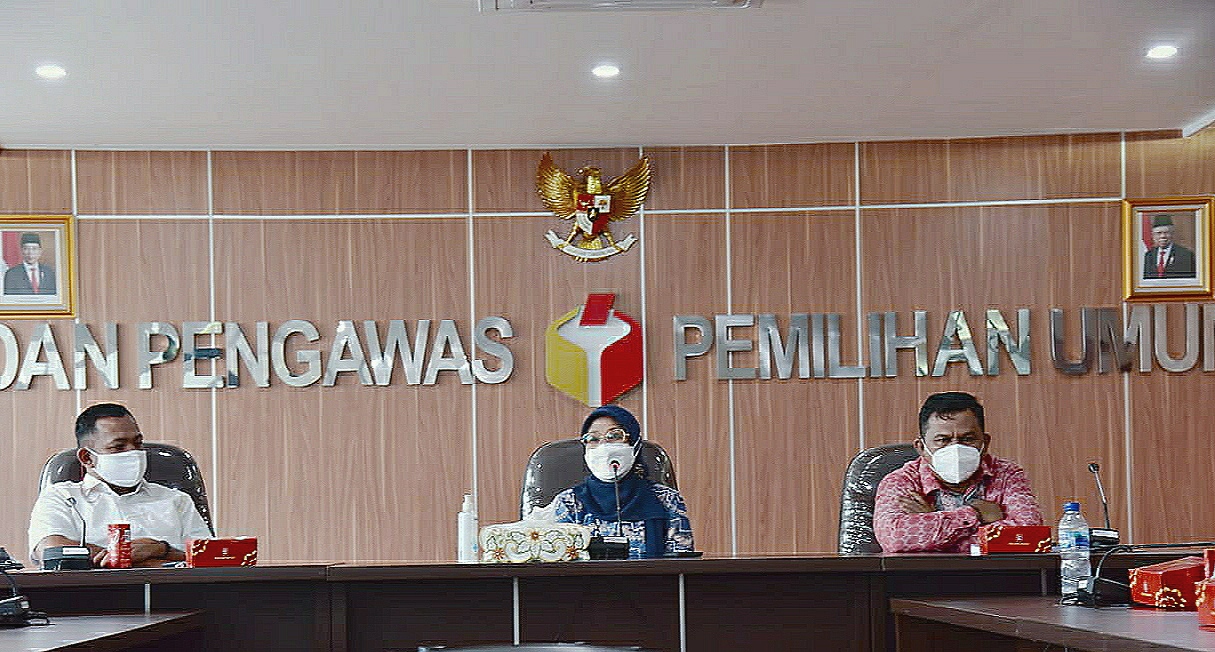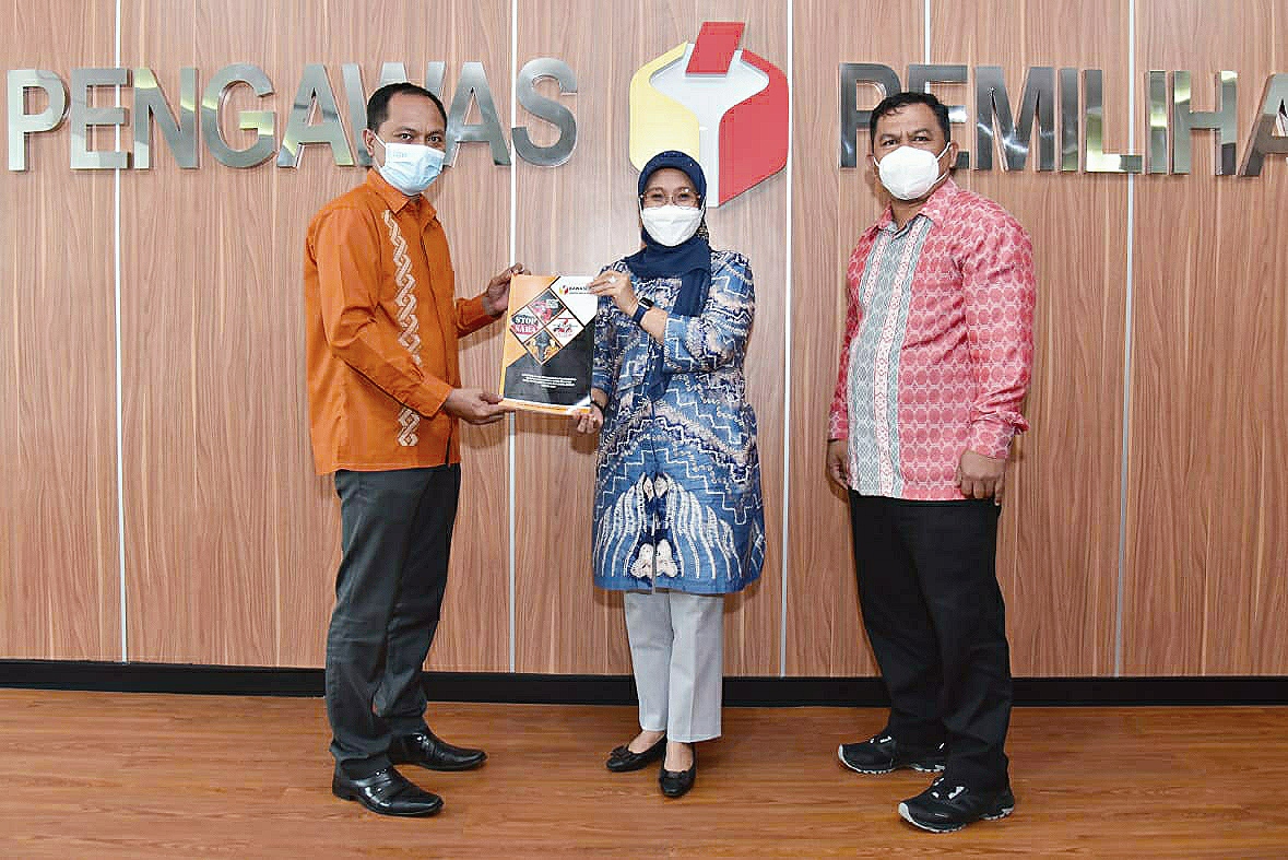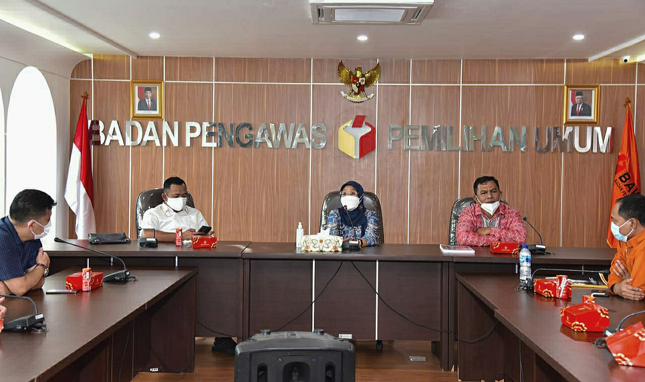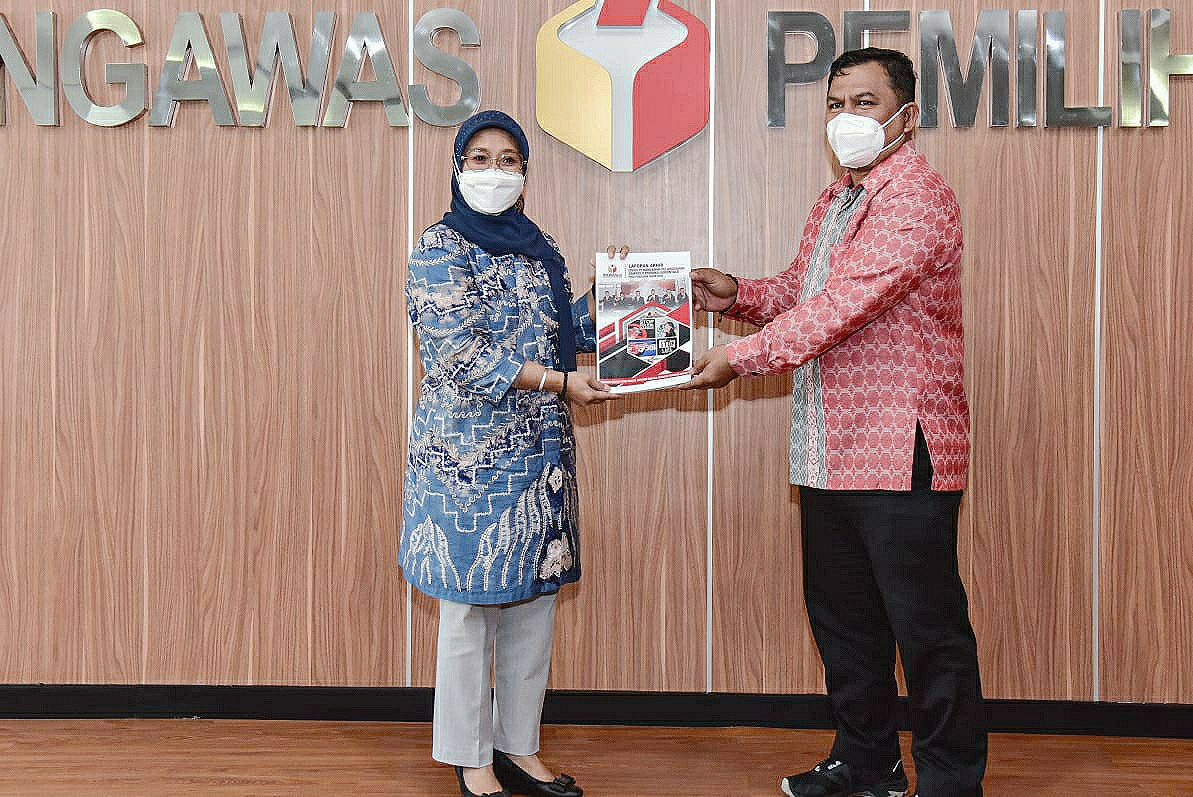 Jakarta, Badan Pengawas Pemilu- Anggota Bawaslu Ratna Dewi Pettalolo, yang juga Koordinator Divisi Penanganan Pelanggaran  menerima laporan akhir penanganan pelanggaran Pemilihan Kepala Daerah 2020 dari Bawaslu Provinsi Sulawesi Utara dan Bawaslu Provinsi Gorontalo di lantai 5 Gedung MH Thamrin 14, Jumat, (5/3/2021) di Jakarta. Photo: HUMAS-Roby