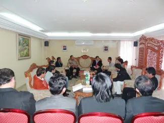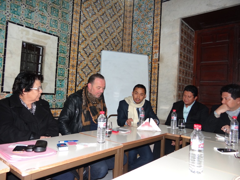 Pertemuan tersebut berlangsung di Mosquée Youssef SahebTabaa, Halfaouine. Delegasi diundang oleh Abderrahmen Boukhari (Ketua Asosiasi Senidan Demokrasi), hadir dalam pertemuan tersebut beberapa elemen masyarakat Tunisia diantaranya Mrs. Leila Bahria (Ketua Observatoire Chahed, mantan Wakil Menlutahun 2013), Mr. Mootez Akacha (Ketua Asosiasi Budaya Islam Saheb Ettabaa).