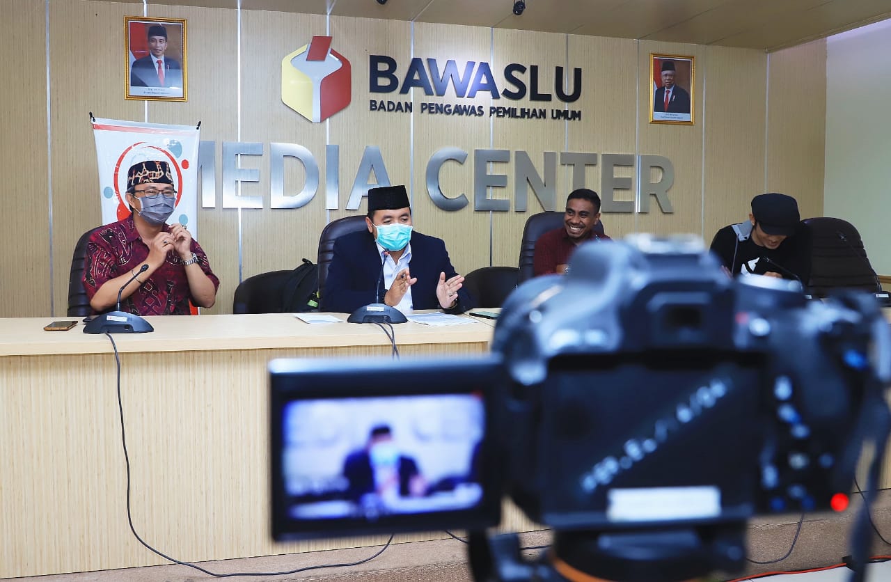 Bawaslu bersama dengan Jaringan Pendidikan Pemilih untuk Rakyat (JPPR) dan koordinator Komite Pemilih Indonesia (KPI) menggelar diskusi media dengan tajuk ”Dampak Covid-19 terhadap Pilkada 2020” di media center gedung Bawaslu, Jakarta, Rabu, (18/3/2020). Hadir dalam diskusi tersebut Anggota Bawaslu Mochammad Afifuddin, Alwan Ola Riantoby Kornas JPPR dan Jerry Sumampouw koordinator KPI. Photo : Humas-Nurisman
