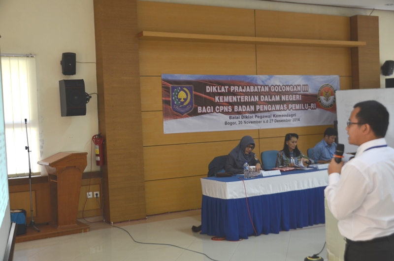Bogor – Badan Pengawas Pemilu. Calon Pegawai Negeri Sipil (CPNS) Bawaslu RI diberi pendidikan Akuntabilitas, Nasionalisme, Etika Publik, Komitmen Mutu dan Anti Korupsi (ANEKA). Diklat prajabatan pola baru ini mulai diterapkan di Pusat Badan Pendidikan dan Pelatihan Kementerian Dalam Negeri, Semplak, Bogor, Jawa Barat. Dihadapan pelatih dan narasumber dari Badan Diklat Kemendagri juga pejabat struktural Sekretariat Jenderal Bawaslu RI yang menjadi Mentor, Para CPNS pagi ini Rabu (10/12) mulai pukul 8.15 WIB memulai pemaparan mengenai implementasi ANEKA pada bagian masing-masing dimana mereka ditugaskan.