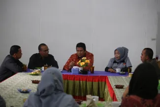 Kunjungan Silaturahmi Ketua Bawaslu RI Muhammad di Kantor Panwas Kabupaten Langkat, Provinsi Sumatra Utara, Senin (17/11). Dalam kunjungannya, Muhammad mengucapkan terima kasih yang sebesar - besarnya kepada jajaran Pengawas Pemilu karena telah mengabdikan dirinya dengan ikhlas kepada negara dan bangsa serta mengutarakan permohonan maaf yang sebesar-besarnya jika selama ini apa yang diberikan oleh negara kepada Panwas dan PPL dinilai tidak setimpal dengan pengorbanan Panwas dan PPL. Semua itu karena kondisi APBN yang tidak memungkinkan.