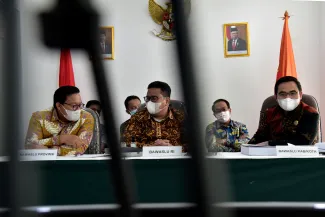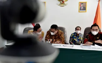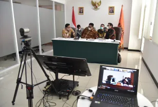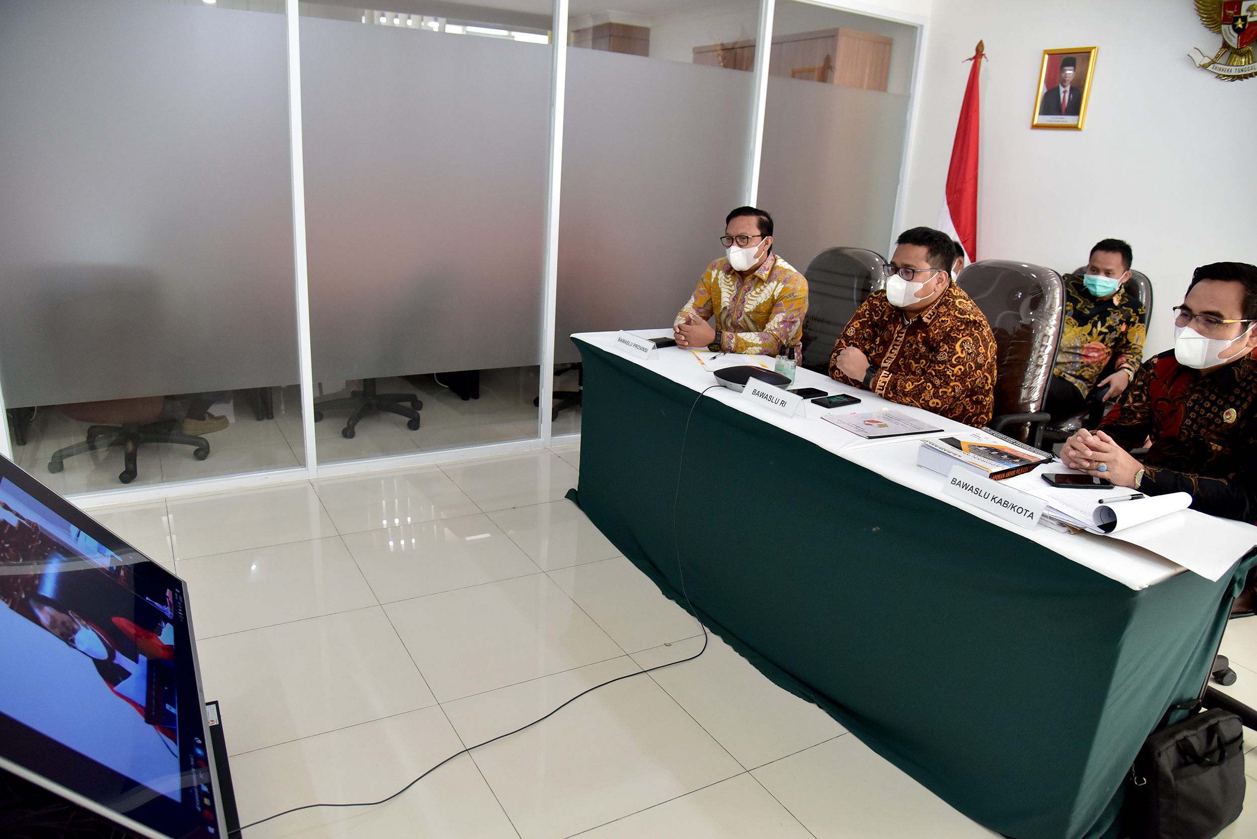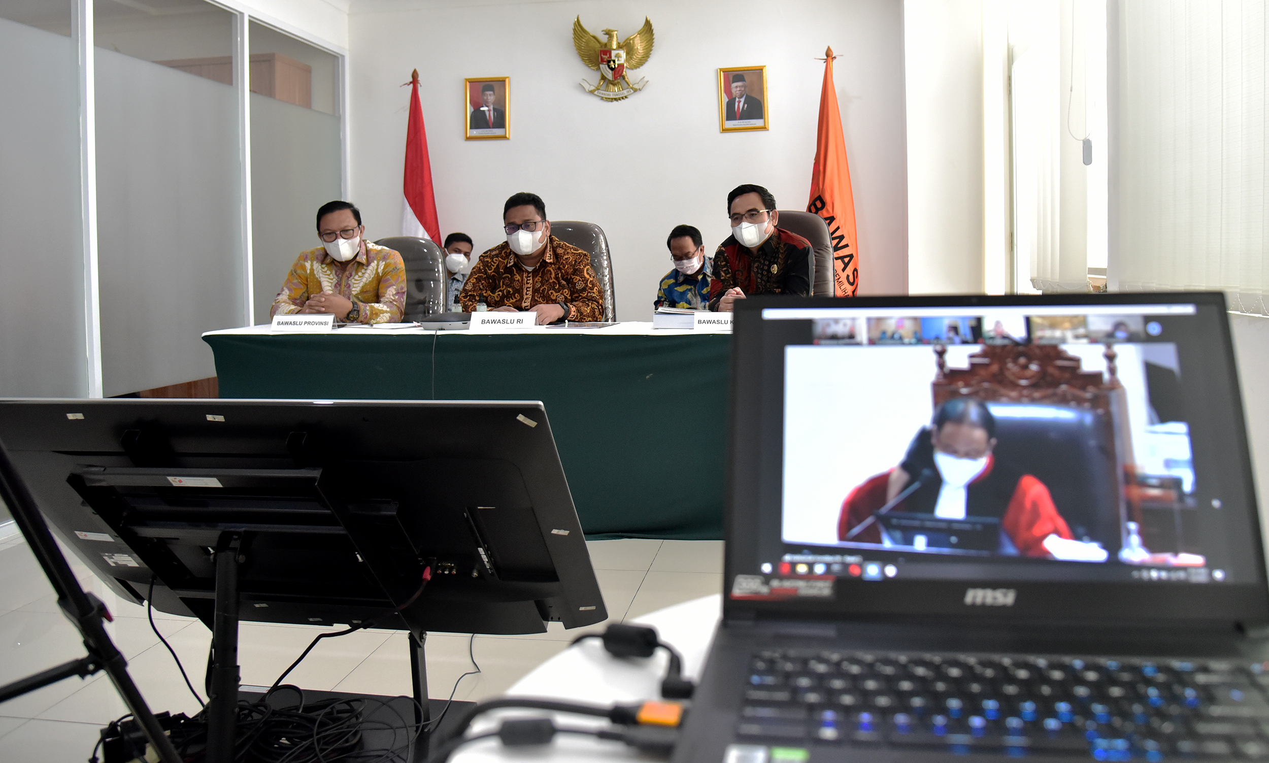 Jakarta, Badan Pengawas Pemilihan- Anggota Bawaslu Rahmat Bagja bersama Anggota Bawaslu Provinsi Sumatera Selatan dan Bawaslu Kabupaten Penukal Abad Pematang Ilir (PALI) mengikuti Sidang pemeriksaan lanjutan Perselisihan Hasil Pemilihan (PHP) Mahkamah Konstitusi Tahun 2020 secara daring, Rabu, (3/3/2021) di Gedung Bawaslu  di Jln MH Thamrin, Jakarta Pusat. Adapun agenda sidang tersebut adalah pembuktian pemeriksaan saksi dan atau ahli. Photo : HUMAS-Nurisman