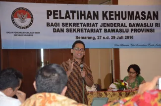 Semarang, Badan Pengawas Pemilu - Bagian Hubungan Masyarakat dan Antar Lembaga Bawaslu RI mengadakan pelatihan kehumasan tahun 2016 bagi staf Humas Sekretariat Jenderal Bawaslu RI dan Sekretariat Bawaslu Provinsi. Kegiatan tersebut diadakan di Hotel Grand Candi Semarang pada tanggal 27 sampai dengan 29 Juli 2016.