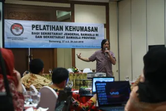 Pelatihan kehumasan dihadiri oleh pimpinan Bawaslu RI Nasrullah dan Nelson Simanjuntak serta beberapa pejabat struktural Sekretariat Jenderal Bawaslu RI.