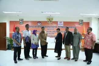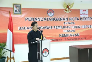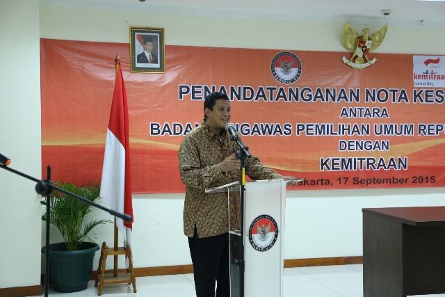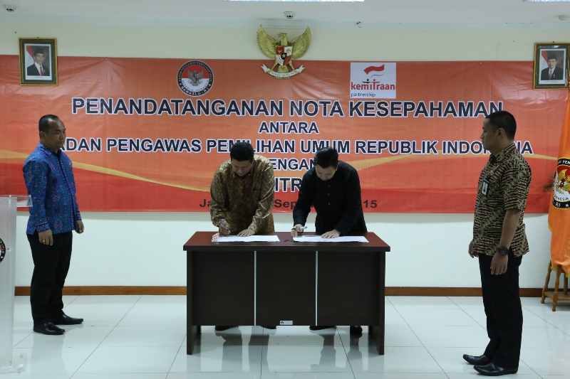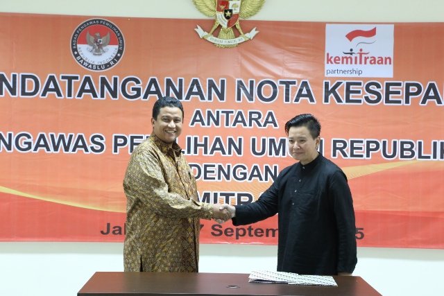 Jakarta, Badan Pengawas Pemilu – Badan Pengawas Pemilihan Umum Republik Indonesia (Bawaslu RI) menandatangani nota kesepahaman dengan The Partnership Governance Reform (Kemitraan) melingkupi pengembangan pusat data dan informasi pengawasan, penanganan pelanggaran dan penyelesaian sengketa pemilu online, Kamis (17/9). Nota kesepaham ini menandai dimulainya kerjasama antara Bawaslu dengan Kemitraan untuk meningkatkan kualitas demokrasi di Indonesia. (HMS)