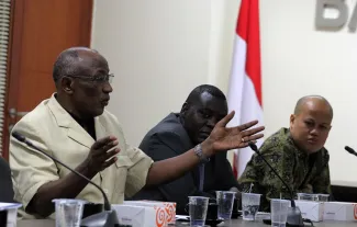 Badan Pengawas Pemilu (Bawaslu) menerima kunjungan delegasi National Electoral Board of Ethiopia (NEBE) atau penyelenggara pemilu Ethiopia di Kantor Bawaslu, Jakarta, Senin (5/6/2017). Kedatangan delegasi Ethiopia tersebut diterima dua Anggota Bawaslu yakni Mochammad Afifuddin dan Rahmat Bagja. Selain dari NEBE, delegasi Ethiopia juga terdiri dari Dewan Perwakilan Rakyat Ethiopia dan The International Institute for Democracy and Electoral Assistance (IDEA). Indonesia merupakan satu dari tiga negara di Asia yang dipilih untuk studi terkait pemilu selain India dan Korea Selatan. Photo: Humas-Nurisman