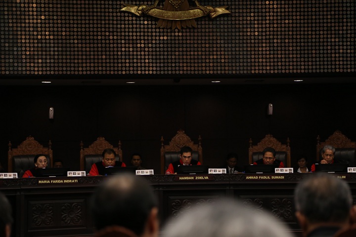 Suasana sidang lanjutan Perselisihan Hasil Pemilihan Umum (PHPU) Pilpres 2014 di Gedung MK, Jakarta, Kamis (14/8).