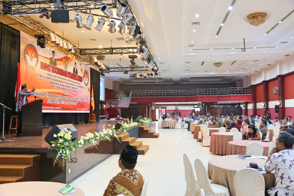 Rapat koordinasi melibatkan Bawaslu Provinsi, Panwaslu Kabupaten/Kota, KPU Provinsi dan KPU Kabupaten/Kota, kepolisian, pemerintah daerah, Satpol PP, ormas dan LSM, tokoh adat, tokoh agama, mahasiswa, pelajar pemilih pemula, serta media massa. Bawaslu juga menghadirkan narasumber dari Komisi Pemberantasan Korupsi (KPK), Pusat Pelaporan dan Analisis Transaksi Keuangan (PPATK), Kementerian Dalam Negeri, Komisi Aparatur Sipil Negara, Mahkamah Konstitusi, dan Dewan Kehormatan Penyelenggara Pemilu (DKPP).