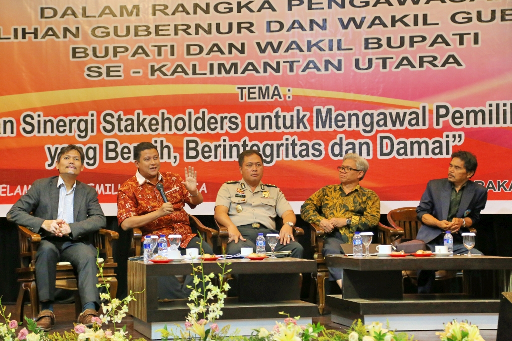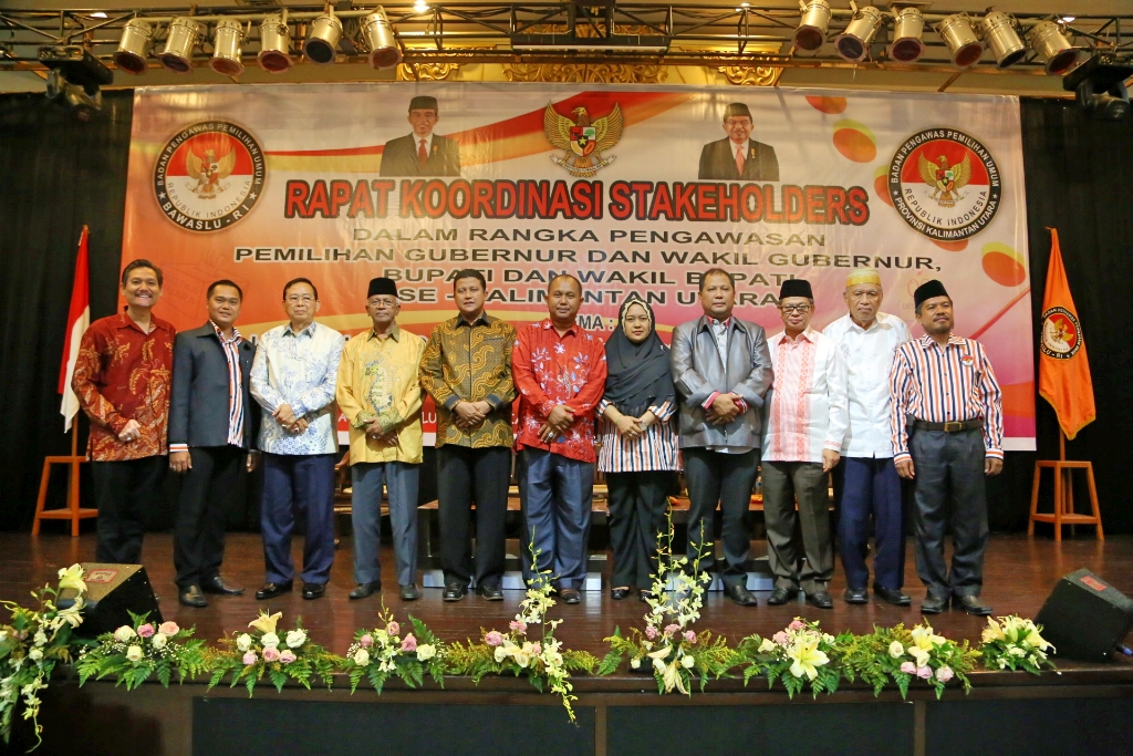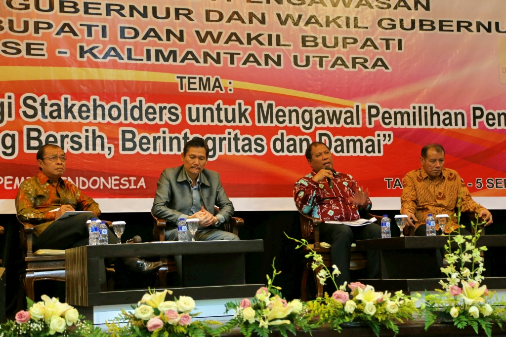 Tarakan, Badan Pengawas Pemilu – Badan Pengawas Pemilu Republik Indonesia (Bawaslu RI) menggelar Rapat Koordinasi Stakeholders dalam rangka Pengawasan Pemilihan Gubernur, Bupati dan Walikota serentak tahun 2015 di provinsi termuda di Indonesia, Provinsi Kalimantan Utara, Kamis (3/9). Rapat koordinasi diharapkan dapat meningkatkan sinergitas semua pemangku kepentingan untuk mengawal pilkada yang bersih, berintegritas dan damai.