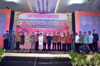 Rapat Koordinasi Stakeholders dalam rangka persiapan pengawasan Pemilihan Gubernur, Bupati dan Walikota di provinsi Sulawesi Utara merupakan acara pertama yang dikemas oleh Bawaslu RI yang memberikan kepercayaan kepada Bawaslu Sulut untuk melakukan rakor stakeholder dan ini untuk pertama kalinya pada pemilihan gubernur, bupati dan walikota pertama dilaksanakan. [CK]