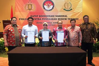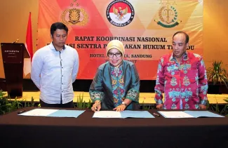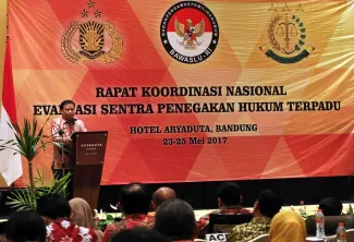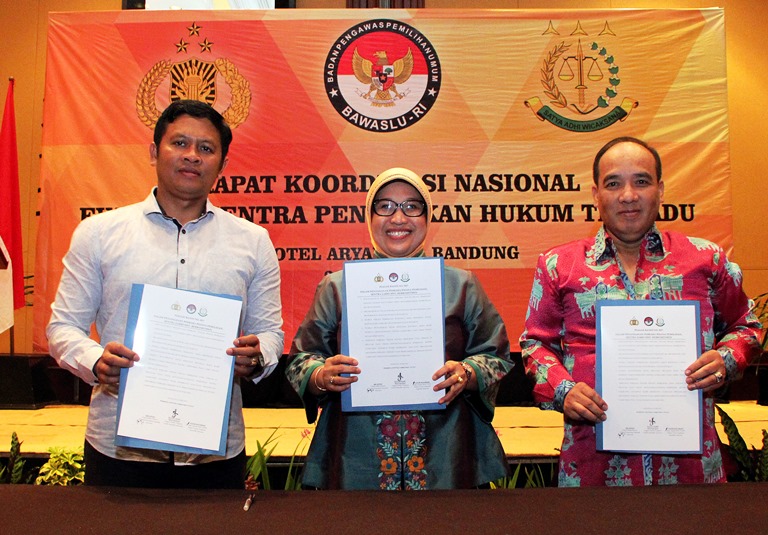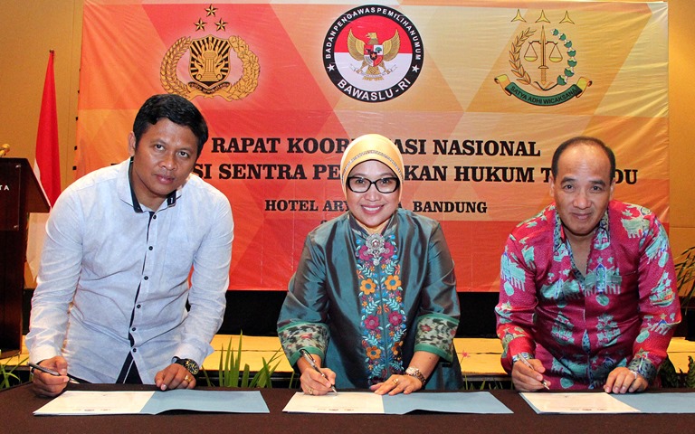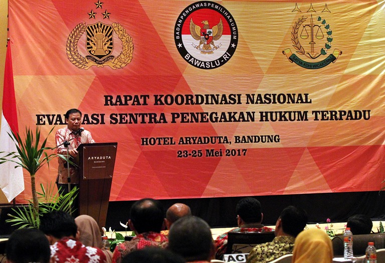 Rapat Koordinasi Nasional Evaluasi Sentra Penegakan Hukum Terpadu (Rakornas Setra Gakkumdu) Pemilihan Gubernur, Bupati, dan Walikota tahun 2017 menghasilkan Piagam Bandung yang berisikan komitmen bersama antara Pengawas Pemilu, Kepolisian, dan Kejaksaan guna membangun sinergitas dalam penanganan pelanggaran tindak pidana Pemilu di Indonesia. Anggota Bawaslu RI, Ratna Dewi Pettalolo yang juga merupakan Ketua Koordinator Sentra Gakkumdu menjelaskan, tim Sentra Gakkumdu sepakat untuk menghasilkan Piagam Bandung guna memaksimalkan kinerjanya dalam mengawal dan mensukseskan Pilkada serentak tahun 2018 dan Pemilu serentak tahun 2019 mendatang. Photo: Humas-Nurisman
