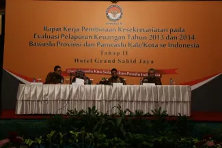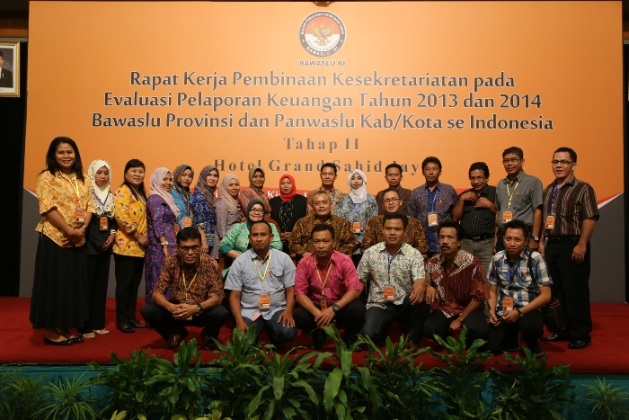 Jakarta-Bawaslu, Setelah sukses menggelar Rapat Kerja Pembinaan Kesekretariatan Pada Evaluasi Pelaporan Keuangan Tahun 2013 dan Tahun 2014 Bawaslu Provinsi dan Panwaslu Kabupaten Kota Se Indonesia Tahap I pada tanggal 22 s.d 24 November lalu. Bawaslu kembali menggelar rapat kerja Pembinaan kesekretariatan evaluasi pelaporan tahap II pada tanggal 24 s.d 26 November 2014 bertempat bertempat di hotel Grand Sahid Jaya.