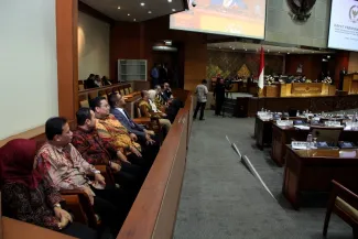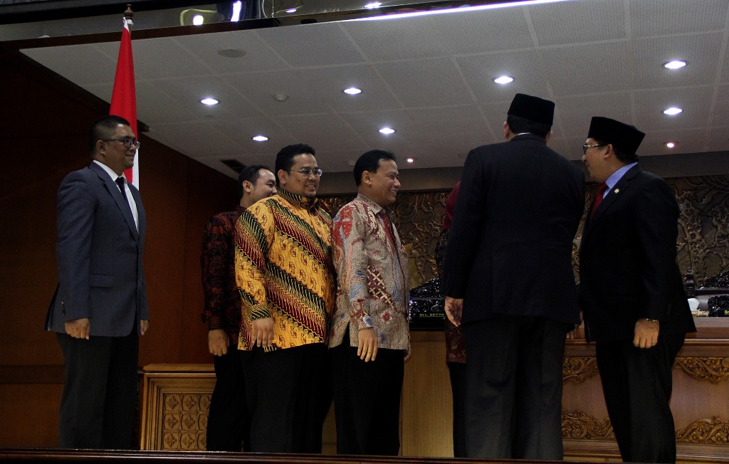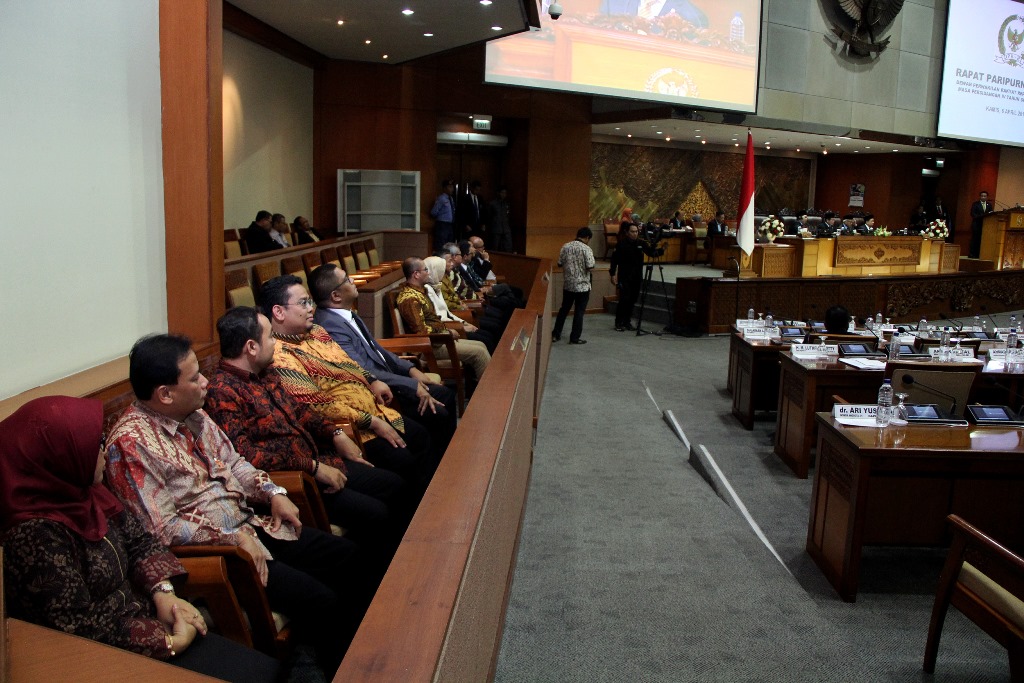 Jakarta, Badan Pengawas Pemilihan Umum --  Rapat Paripurna DPR RI, Kamis (6/4), menetapkan lima Anggota Badan Pengawas Pemilihan Umum (Bawaslu) dan tujuh Anggota Komisi Pemilihan Umum (KPU) Periode Tahun 2017 - 2022 yang diseleksi oleh Komisi II DPR setelah melewati tahapan uji kelayakan dan kepatutan dan dipilih melalui mekanisme voting. Pada rapat paripurna yang dipimpin Wakil Ketua DPR, Taufik Kurniawan itu anggota dewan yang hadir secara aklamasi menyetujui nama-nama yang diserahkan oleh Komisi II.