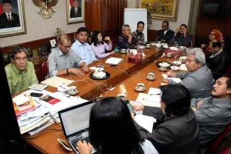Ketua Bawaslu RI Muhammad, Pimpinan Bawaslu RI Endang Wihdatiningtyas, Sekretaris Jenderal Bawaslu RI Gunawan Suswantoro, Ketua KPU RI Juri Ardiantoro,  Komisioner KPU RI Arief Budiman, Ida Budhiati, Hadar Nafis Gumay Hasyim Asy'ari, Ferry Rizki Kurniansyah, serta Anggota DKPP RI Saut Hamonangan Sirait hadiri Rapat Tripatrit antara KPU, Bawaslu, dan DKPP membahas potensi pelanggaran Pilkada 2017 di Gedung KPU RI, Senin (30/1) .