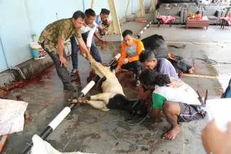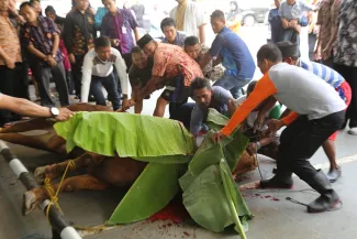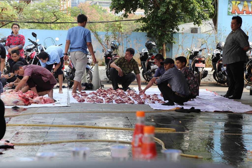 Jakarta, Badan Pengawas Pemilu - Badan Pengawas Pemilu melakukan pemotongan hewan kurban pada perayaan Idul Adha 1436 H Jumat, (25/9). Pemotongan hewan kurban tersebut dimaksudkan sebagai bentuk salah satu ritual ibadah agama Islam. Ketua Bawaslu Muhammad berserta pimpinan Bawaslu Nelson Simanjuntak berkesempatan hadir untuk melakukan ritual pemotonga hewan kurban tersebut. Adapun hewan yang dikurbankan sebanyak dua ekor sapi dan satu ekor kambing. (HW)
