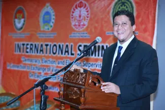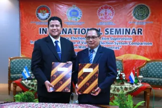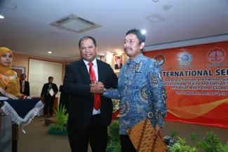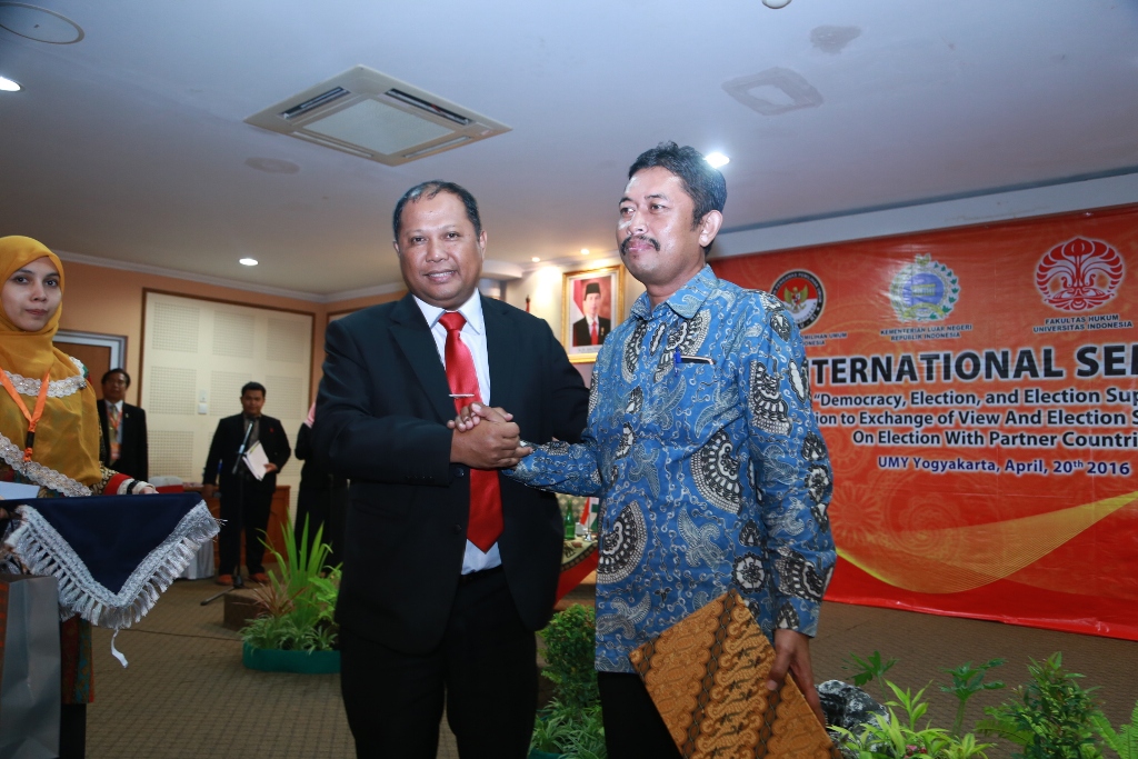 Yogyakarta, Badan Pengawas Pemilu - Bawaslu Republik Indonesia bekerja sama dengan Universitas Muhammadiyah Yogyakarta (UMY) menggelar seminar internasional bertajuk “Demokrasi, Pemilu, dan Pengawasan Pemilu” di Yogyakarta, Rabu (20/4). Seminar yang digelar dalam rangka pertukaran pengetahuan serta komparasi sistem pemilu dengan Negara-negara sahabat itu menghadirkan perwakilan dari Argentina, India, dan akademisi sekaligus penyelenggara pemilu dari Belanda. (Humas)