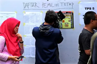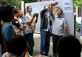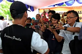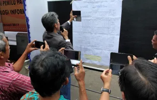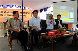 Keterangan Photo: Bawaslu RI bersama Bawaslu DKI melakukan pengawasan berbasis IT atau teknologi informasi dalam Pilgub DKI 2017, pengawasan partisipatif berbasis IT menggunakan handphone yang berbasis android untuk mendokumentasikan kegiatan di TPS baik berupa photo dan video, Rabu (09/02) di Jakarta.