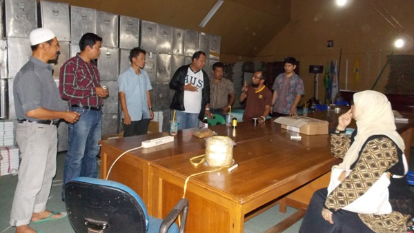 Jakarta, Badan Pengawas Pemilu - Pimpinan Bawaslu RI Nasrullah dan Endang Wihdatiningtyas melakukan supervisi logistik Pemilu di kantor KPU Kabupaten Nunukan, Jumat (27/6) sekitar pukul 17.15 wib. Tim supervisi  mendapat penjelasan dari Komisioner KPU Nunukan Andi Umar dan sejumlah KPU Kabupaten Nunukan, tentang kesiapan logistik Pilpres. Pada kesempatan itu, terungkap sejumlah kendala distribusi logistik ke kecamatan dan desa di wilayah Kalimantan Utara  yang  hanya bisa di jangkau dengan pesawat udara yakni Kecamatan Krayan, Kecamatan Krayan Selatan dan Kecamatan Lumbis Ogong. Juga masih terdapat kekurangan logistik Pilpres yang belum didistribusikan dari KPU Provinsi Kaltim.