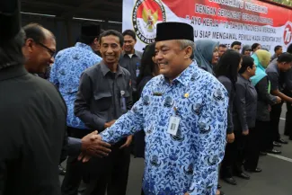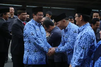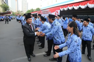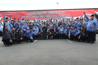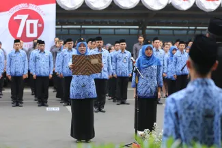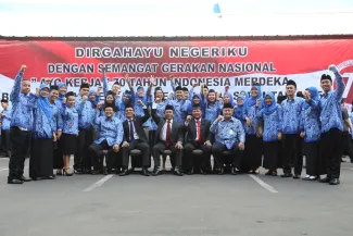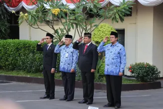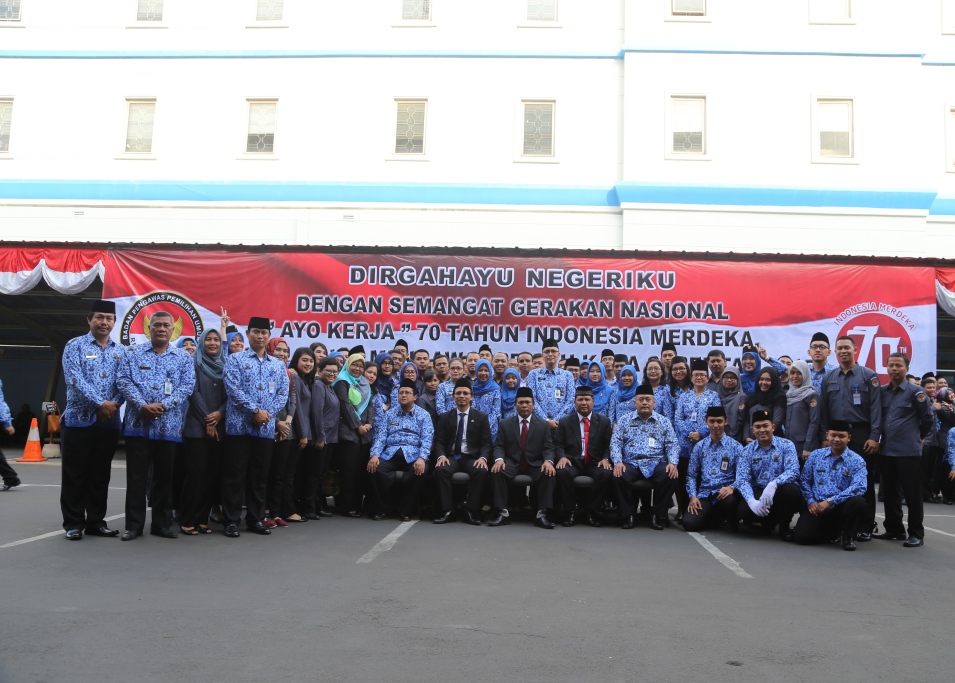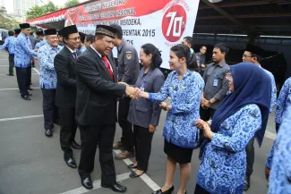 Jakarta, Badan Pengawas Pemilu - Badan Pengawas Pemilu memperingati hari Kemerdekaan Republik Indonesia yang ke 70 di Gedung Bawaslu, Senin (17/8). Secara hikmat para pejabat struktural dan staf di lingkungan Bawaslu melaksanakan upacara pengibaran bendera merah putih sebagai tanda penghormatan untuk para jasa pahlawan yang telah gugur berjuang demi kemerdekaan RI. (Humas)