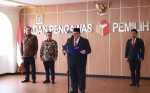 Jakarta, Badan Pengawas Pemilihan Umum - Ketua Bawaslu Rahmat Bagja melantik sekaligus mengambil sumpah jabatan Pengganti Antar-Waktu (PAW) lima anggota Bawaslu kabupaten/kota. Dalam pelantikan tersebut, Bagja langsung meminta lima anggota Bawaslu terlantik langsung berkoordinasi dengan ketua dan anggota Bawaslu kabupaten kota di wilayah masing-masing.